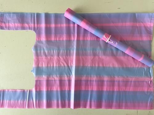 タイのビニール袋/ストライプ/12×20/ピンク×水色