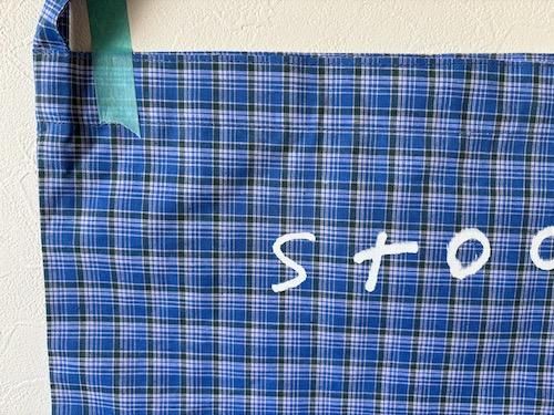 インドのルンギバッグに、お店のロゴ「stock」を