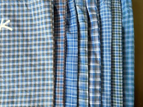 インドで腰巻などで使われている「ルンギ」は青系のチェックのコットン布。